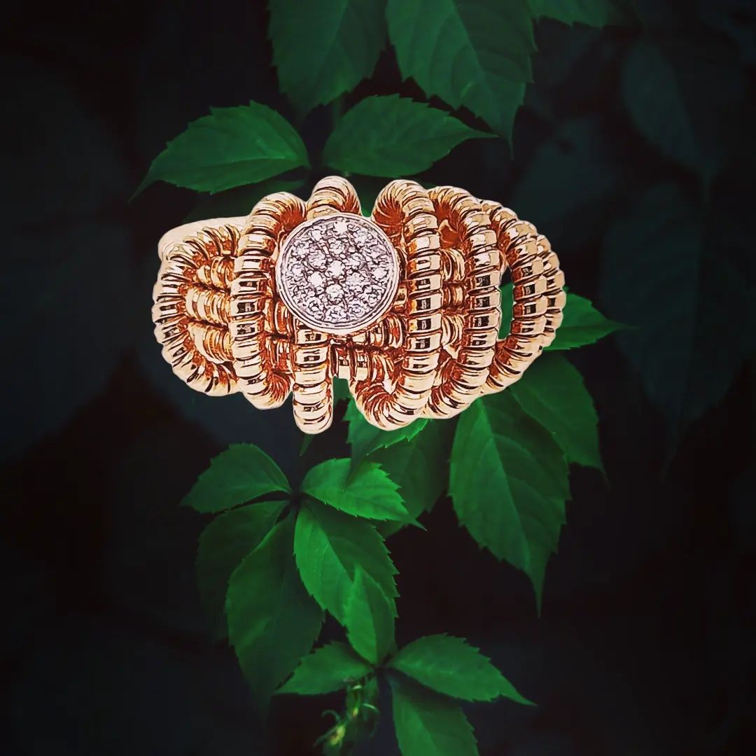 Italian Retro 18ct Gold & Diamond Fluted Ring