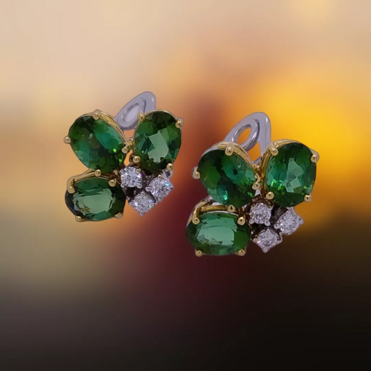 Vintage Green Tourmaline & Brilliant Diamond Clip to Post Earrings